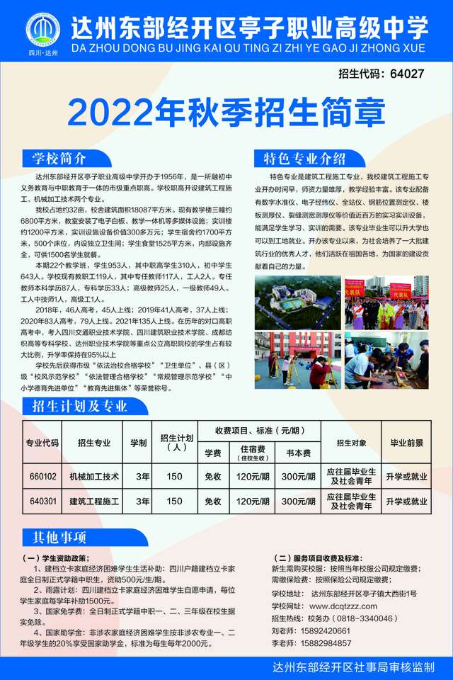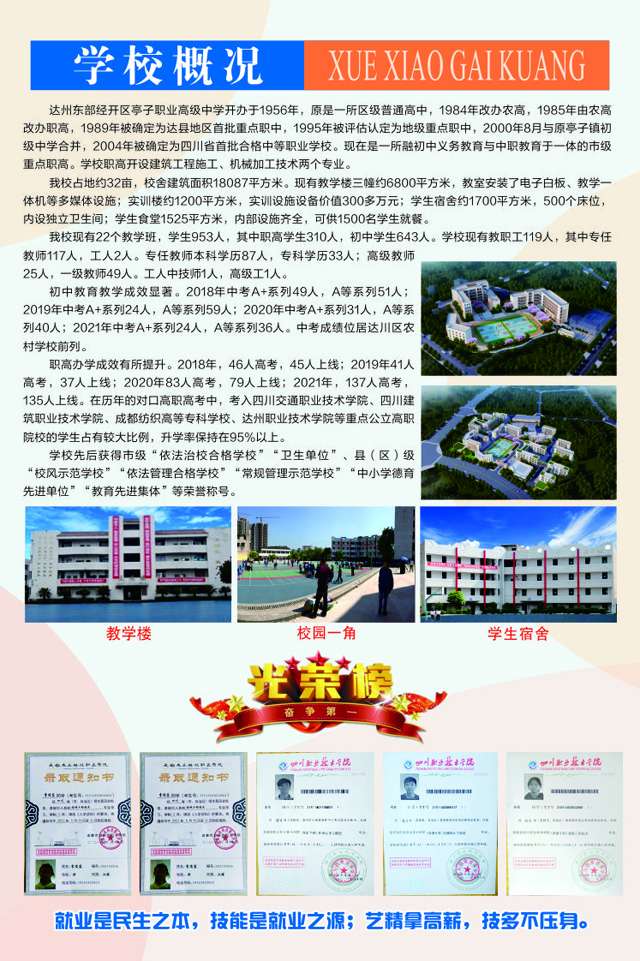 達州東部經開區亭子職業高級中學2022年招生簡章