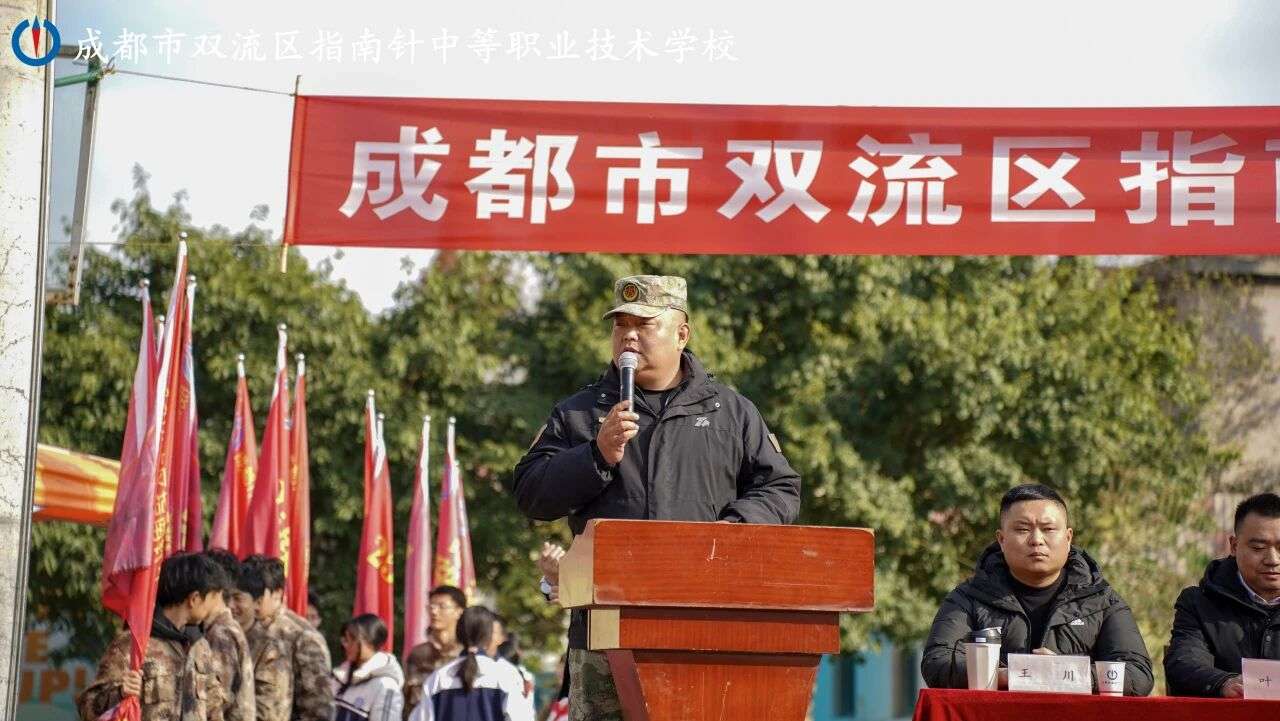 當迷彩榮光邂逅青春朝氣,當國防號角奏響奮斗強音,12月23日下午14點30分,成都市雙流區指南針中等職業技術學校2025級國防教育特色專項訓練開訓儀式,在綠茵場上隆重舉行。學校執行校長周宇及全體管理干部、總教官洋仁武及全體教官、25級各班班主任出席儀式,儀式由學校團委書記符英華主持。
