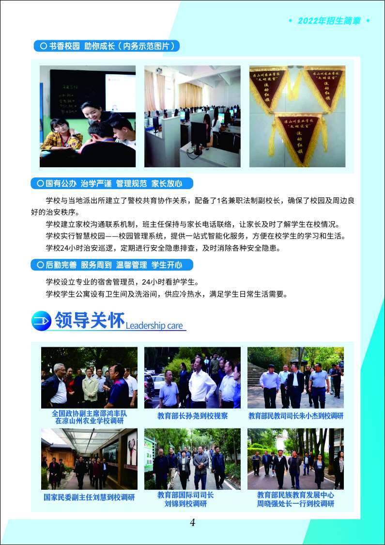 始終加強黨對學校工作的全面領導,全面貫徹黨的教育方針,堅持立德樹人、服務發展、促進就業的辦學方向,堅持舉“農”字大旗,辦現代職教的發展思路,實干興校,多極發展、立足涼山、輻射攀西,致力于為民族地區培養服務“三農”的實用技能型人才。以就業為導向,按市場需求設置專業,培育骨干專業,以學歷教育為主,各類成人教育和短期培訓為輔,長短結合,采取多類型辦學模式和彈性學制,滿足不同類型學生的學習需求。作為“中國.涼山安寧河流域現代農業硅谷”成員單位,堅持走內涵式發展道路,積極探索產教融合發展思路,主動適應國家和區域經濟結構調整、產業轉型與技術進步對人才的需求,主動對接州委州政府發展戰略,為戰略實施鄉村振興,為涼山經濟發展服務培養高質量的技能型人才。