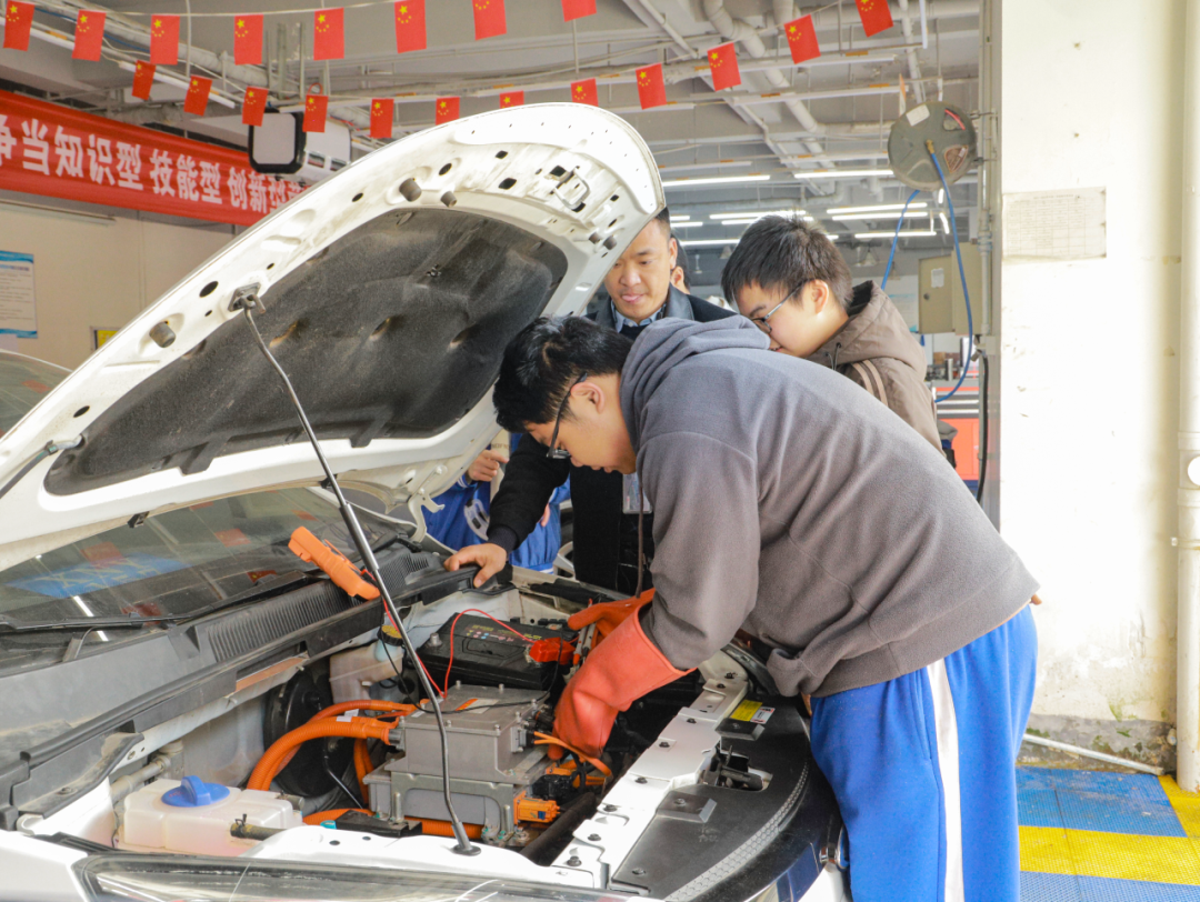 充足實訓工位:配備 1985 個實訓工位,建有新能源汽車整車實訓室、高壓電安全實驗室、汽車底盤拆裝車間等 30 余個專業場地,能充分保障學生的實操頻次。
