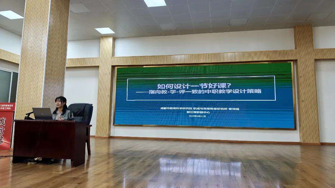 為提升教師教學(xué)設(shè)計(jì)能力,深化職教教學(xué)改革,2026 年 4 月 21 日,都江堰市職業(yè)中學(xué)特邀成都市教育科學(xué)研究院雷沛瑤博士,開展《指向 “教 - 學(xué) - 評(píng)” 一致的中職教學(xué)設(shè)計(jì)策略》專題講座。全校教師參與了此次學(xué)習(xí)。