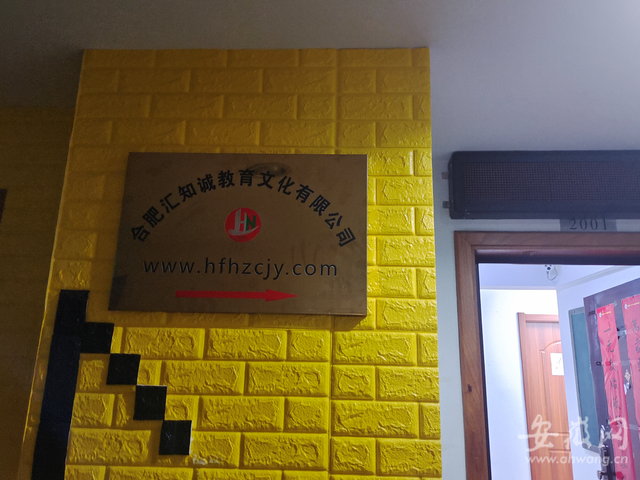 記者探訪發現,整棟CBD公寓樓的上“黑名單”的培訓班中僅有位于2001室的合肥匯知誠教育文化有限公司尚在開門。該培訓機構門口貼著“2019年志愿填報光榮榜”,以及該教育機構的業務范圍,上面寫著“自主招生、教育培訓、單詞突擊、出版發行。”室內還有兩位工作人員在工作。一位工作人員在錄播教室錄制線上課程,另一位工作人員出來接待了記者。記者自稱是在校大學生,有出國留學的打算,希望找老師輔導一下雅思英語。工作人員告訴記者,可以留下聯系方式,后面可以根據需求安排老師,現在疫情期間主要是網課或是上門的一對一課程。