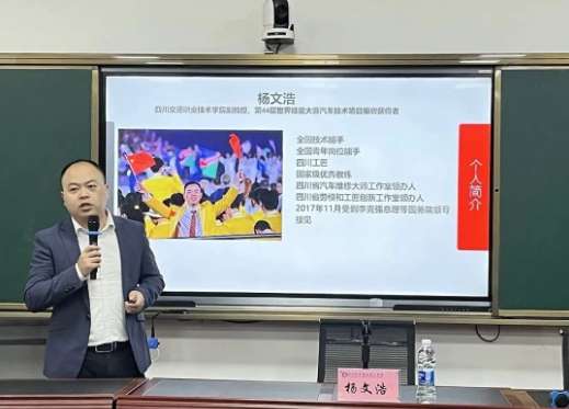 作為四川科華高級技工學校邀請來校分享的大國工匠,第44屆世界技能大賽汽車技術項目銀牌獲得者楊文浩老師通過講述自己的成長經歷與同學們進行了深入交流。在交流中,他對世界技能大賽和汽車技術行業進行了詳細介紹,從個人成長經歷和對工匠精神的理解上與同學們進行了溝通。