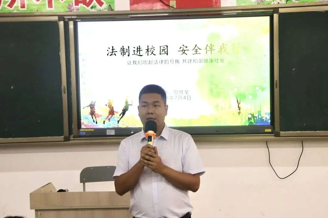 為進一步加強校園法治教育,增強學生的法治觀念,提高學生的法律意識和自我保護能力,及提高消防安全意識。2024年7月4日下午,我校開展了主題為“法制進校園,安全伴我行”的法制教育講座。講座分別由我校副校長賀勝全、學生處副處長孫歡主講。