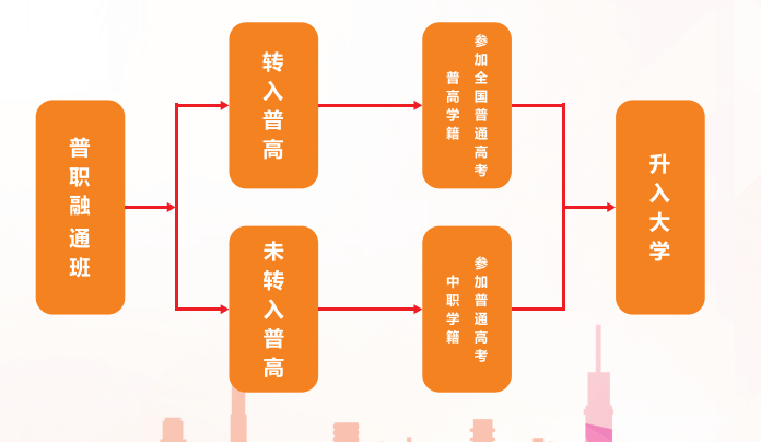 備注:未轉(zhuǎn)入普高的學(xué)生,繼續(xù)按照普職融通班課程設(shè)置開展教學(xué),高三由學(xué)校組織學(xué)生參加全國普通高考升入大學(xué)。